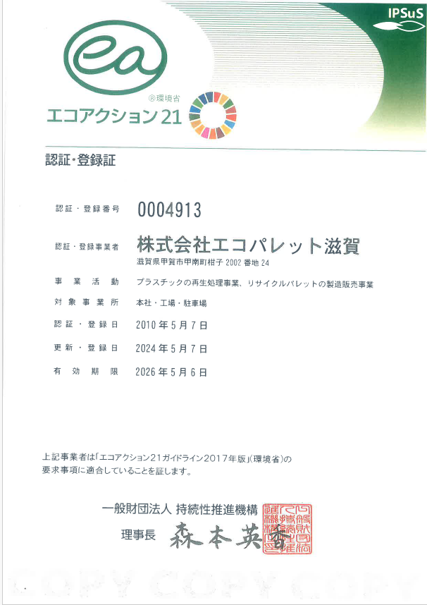 エコパレット滋賀は、環境方針を定め、環境保全への行動指針として、下記を掲げています。